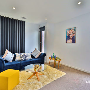 Features of the Home: Dedicated theater room for immersive entertainment Extra-wide garage with large roller door and space for a home workshop Downstairs bedroom and bathroom, ideal for guests or extended family Gourmet kitchen with 900mm undermount cooktop, dual wall ovens, and a stone benchtop Butler’s pantry with additional storage and sink Spacious alfresco and large backyard, perfect for entertaining and play Master bedroom suite with retreat, his & her walk-in robes, and luxurious ensuite Three additional bedrooms, with built-in robes Main bathroom and separate powder room upstairs Second living area upstairs for additional family space Inclusions: High ceilings with squared cornices throughout Ducted heating and cooling for year-round comfort Premium designer landscaping LED downlights to downstairs living areas and the master bedroom Double undermount sink in the kitchen and butler’s pantry Upgraded stone benchtops and window splash backs Bosch alarm system for enhanced security Tiles to hallway, kitchen, dining, and one open-plan living area Carpeting in the living areas downstairs and throughout the upstairs Pendant lighting in the dining area Dishwasher for added convenience